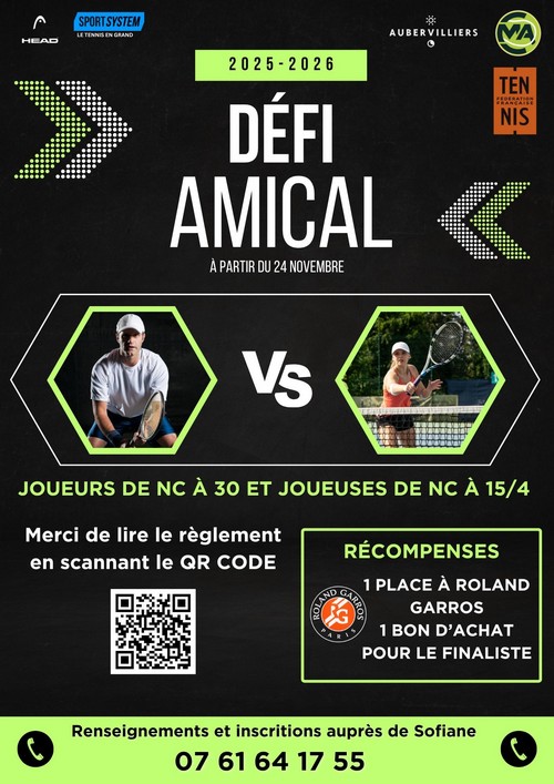 Pour progresser et rencontrer des nouveaux partenaires de jeu, participer au défi amical.